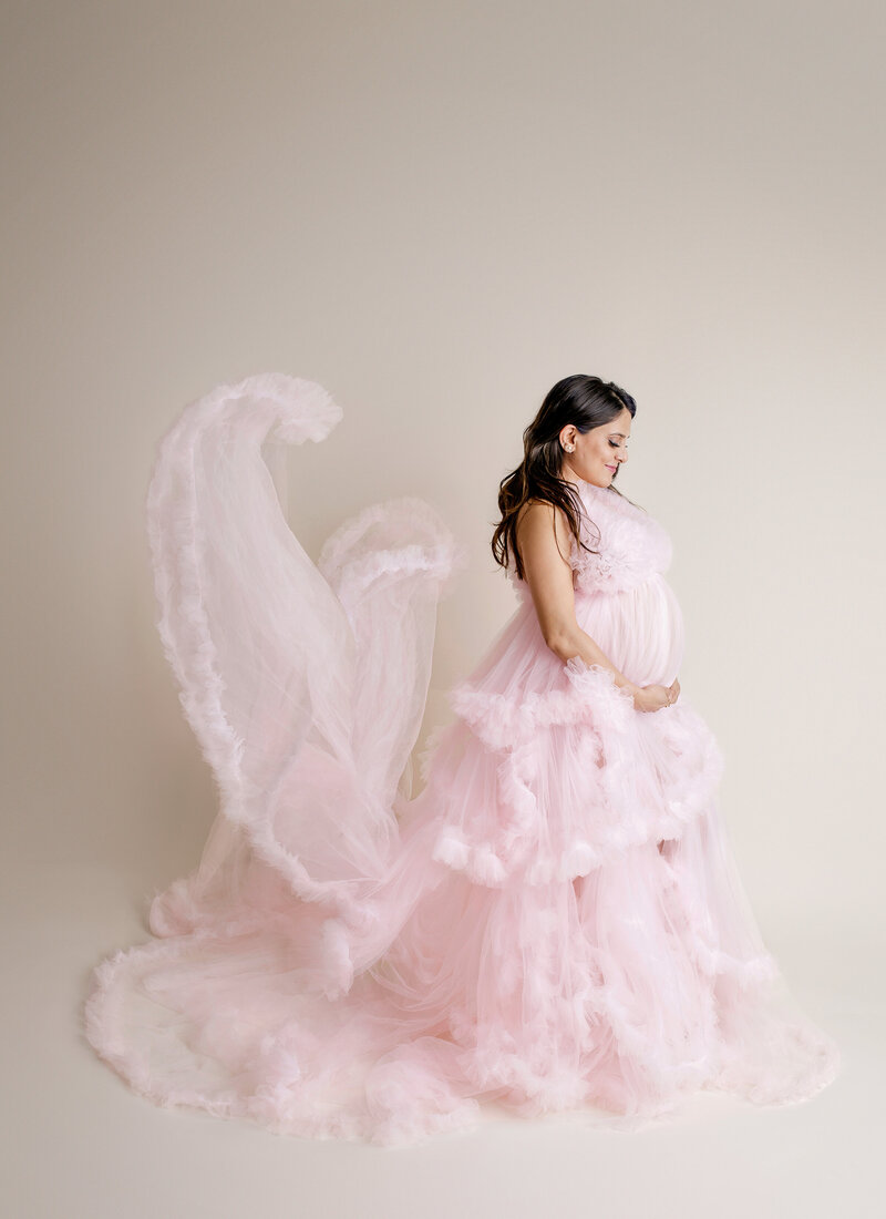 Sessions typically run 1.5 to 2 hours, allowing for mama's rest time and outfit and set changes. Scheduled between 28-34 weeks, we are flexible and accommodate based on how you feel, recognizing that every pregnancy is unique.