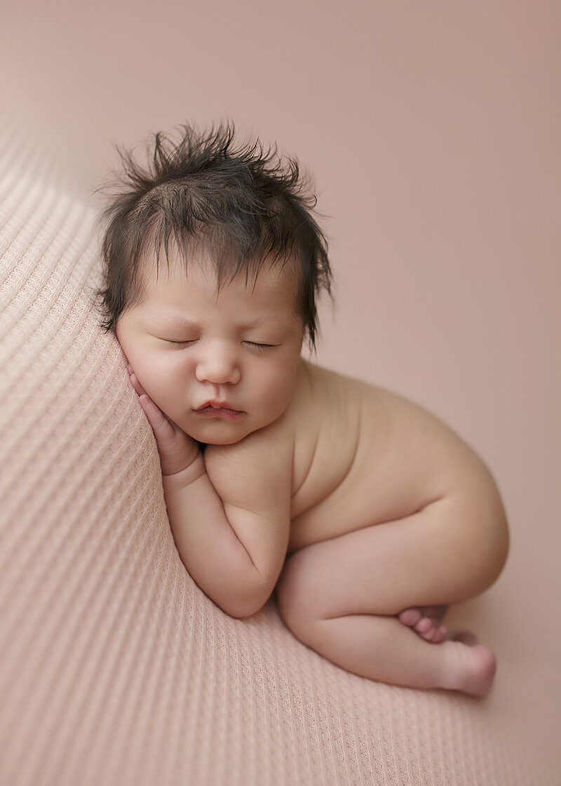 There is a workflow of poses that we go through during the session. We will try our very best to get every pose and prop possible with your baby. However, some babies don’t like to be touched or moved around too much. Should your newborn become unsettled, we will move on to simpler
